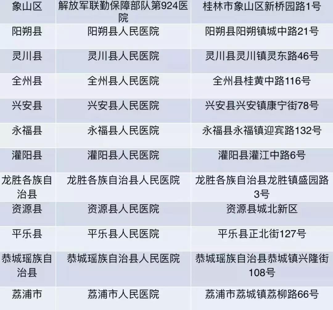 桂林市設有發熱門診的醫療機構名單