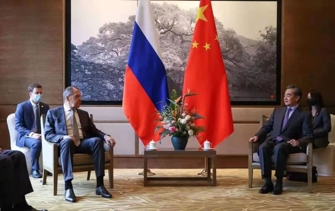 俄外交部在隨后的一條推文中則曬出了與中國國務委員兼外交部長王毅的合影。這條推文寫道:"俄羅斯外長謝爾蓋·拉夫羅夫與中國外交部長王毅舉行會晤。"(來源:觀察者網)