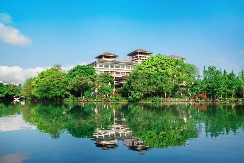 如今,榕湖飯店建筑因規(guī)劃升級(jí)正擴(kuò)建施工,建成后的新飯店以盛唐建筑群落為主,三面臨水,左攬迎賓橋,右接榕溪橋,湖上法式凱旋門和中國(guó)的傳統(tǒng)吊橋完美結(jié)合在一起,像一位從盛唐穿越而來(lái)的偉人,岸然佇立于湖濱,守望榕湖。