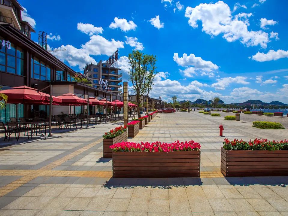 興進·漓江郡府,興進集團『TOP漓江系』首秀作品,其3萬方商業桂坊也以漓江風情為特色進行規劃,以家為圓心,完善"最后一公里"商圈,打造高品質社區商業。