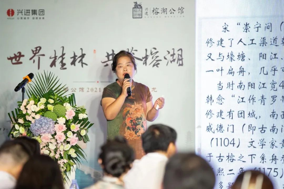 活動最精彩的部分,是來自興進集團、桂林歷史文化研究會、桂林圖書館、桂林房協、桂林電視臺相關意見領袖和專家就《榕湖文化與桂林城市發展》做了深度的研討。各位大咖圍繞榕湖文化研究相互對話論道,又以不同年代身份代表分享了作為榕湖圈土生土長居民,在榕湖畔生活居住往事和對榕湖骨子里的情懷。興進集團領導表示項目在深度挖掘、傳承和傳播榕湖文化的同時,一定會打造出經典傳世的項目而不負眾望。