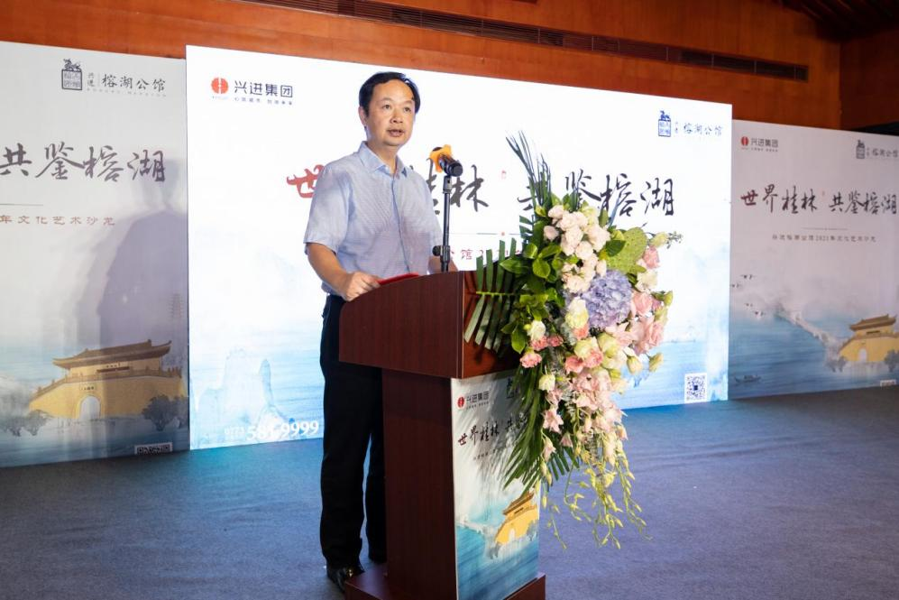 一首少兒吟誦的《詠桂林·頌榕湖》演繹了歷朝歷代桂林山水歌賦,將所有來賓帶入到桂林山水的畫卷中。興進集團董事長羅欣先生出席并為活動致詞發言,表示這是一場"穿越千年榕湖"的歷史文化交流會,目的是為尋找、挖掘、保護和利用好榕湖的文化資源,傳播榕湖文化,讓市民更加深入地了解榕湖,也傳遞了興進集團作為桂林知名企業對桂林文化傳承和傳播的社會責任和歷史使命感。