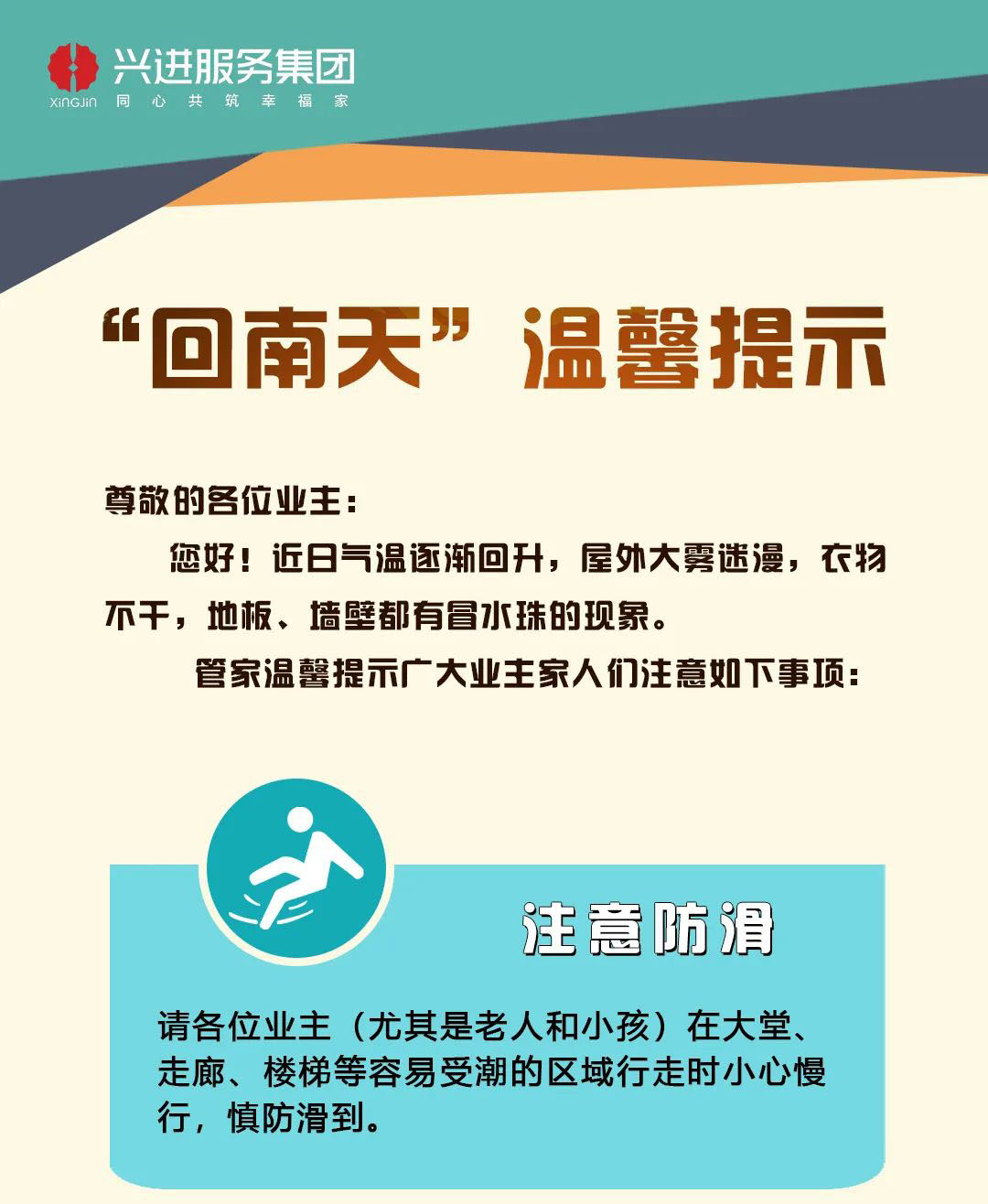 用行動將愛心寫實,把文明變成舉手之勞。興進服務集團以高標準、人性化的服務,為10萬+業主們提供以人為本的居家環境,建立和睦友善的鄰里關系,營造文明和諧的社區氛圍,打造滿意度高、生活幸福感強的美好家園。