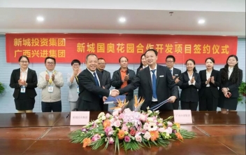 10月11日,廣西興進(jìn)集團(tuán)與廣西桂林新城投資開(kāi)發(fā)集團(tuán)在新城投資集團(tuán)15樓會(huì)議室舉行新城國(guó)奧花園合作開(kāi)發(fā)項(xiàng)目簽約儀式。桂林市臨桂新區(qū)工委委員、管委會(huì)副主任覃正東出席并見(jiàn)證簽約,廣西興進(jìn)集團(tuán)董事長(zhǎng)羅欣先生,廣西桂林新城投資開(kāi)發(fā)集團(tuán)總裁周道林先生,分別代表雙方在合作協(xié)議書(shū)上簽字。廣西興進(jìn)集團(tuán)深耕桂林21載,始終遵循充分利用、挖掘土地價(jià)值的原則。經(jīng)過(guò)公平、公正、公開(kāi)的遴選招標(biāo)程序,廣西興進(jìn)集團(tuán)與廣西桂林新城投資集團(tuán)達(dá)成合作共識(shí),雙方共同合作開(kāi)發(fā)新城國(guó)奧花園剩余土地。