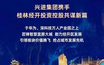 興進(jìn)集團(tuán)攜手桂林經(jīng)開(kāi)投資控股共謀新篇。于華為、深科技萬(wàn)人產(chǎn)業(yè)園之上,打造智慧宜居大城,助力經(jīng)開(kāi)區(qū)發(fā)展。