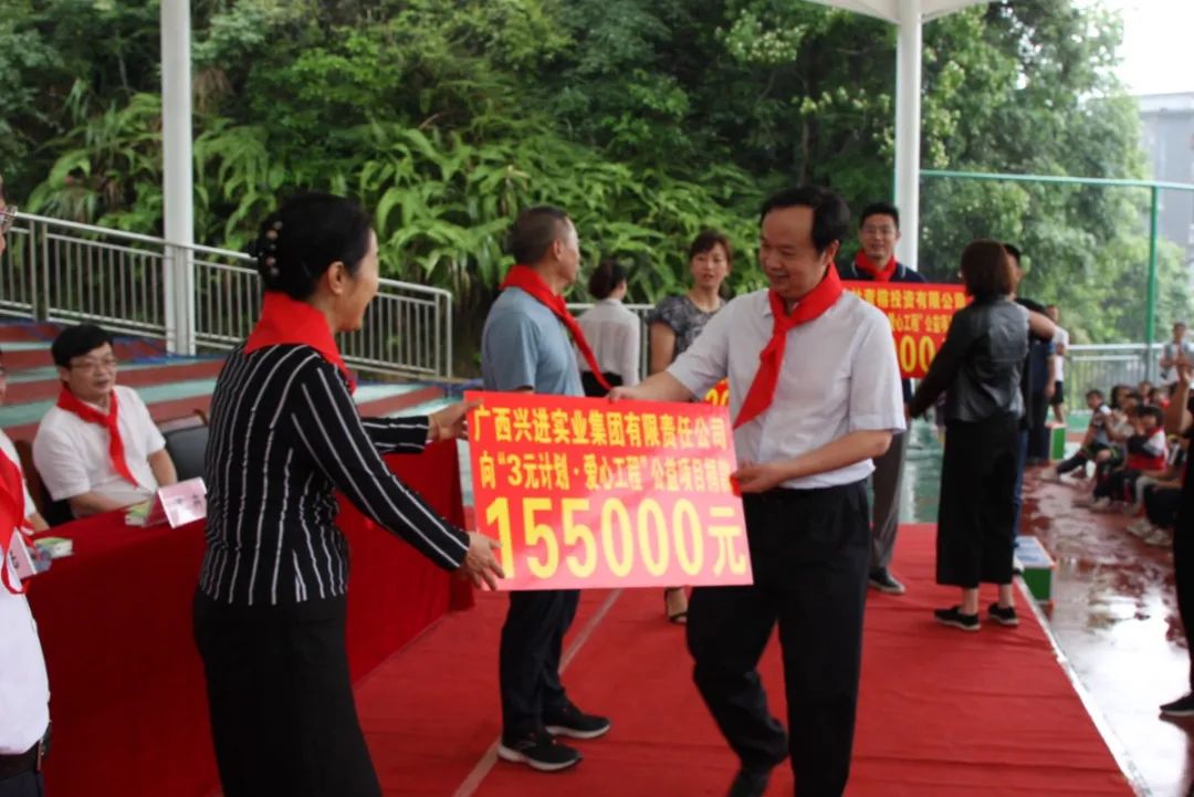 6月,"三元計劃·愛心工程"繼續出發,于兒童節當日,在龍勝縣龍勝鎮第二小學隆重舉辦了"關愛困境兒童,助力鄉村振興" 2021年慶"六·一"資助困境兒童暨捐書活動,此次活動由市關工委、市民政局等單位共同主辦,興進集團作為愛心工程的愛心企業代表出席了此次活動,集團董事長兼總裁羅欣先生代表興進向"三元計劃·愛心工程"公益項目捐款共計155000元。