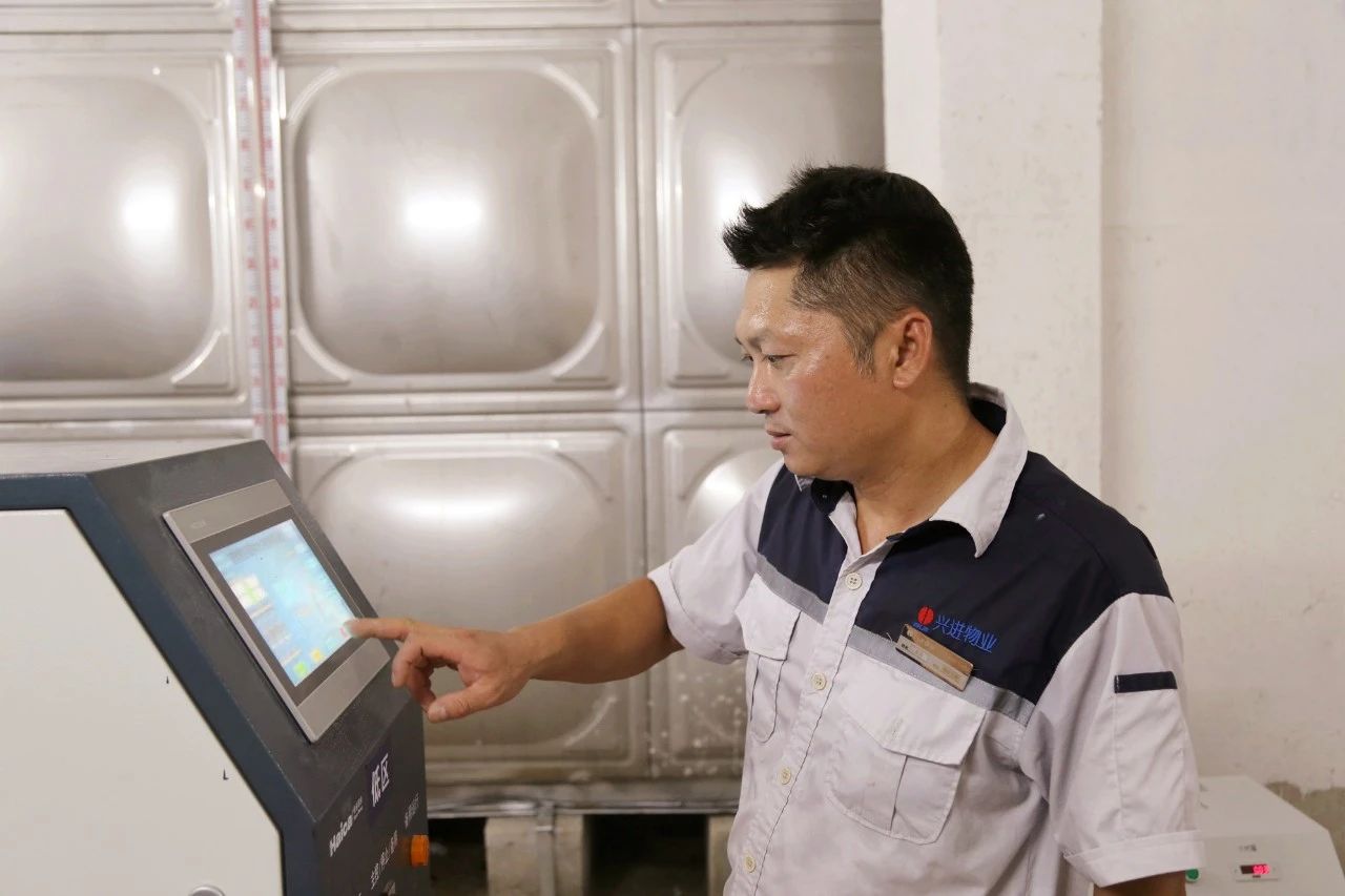水質衛生質量達標成為了水泵房日常管理工作中的重點。興進物業每年定期委托衛生部門進行水質檢測,檢測頻次按國家二次供水規范進行,另外外聘有資質的外包方對水箱進行一年2次的清洗,以確保水箱的清潔達到標準;此外,興進物業維修員按照嚴格的規章制度和細致的操作每日進行養護和清理,并定期進行水壓檢測,保證設施設備的正常運行。